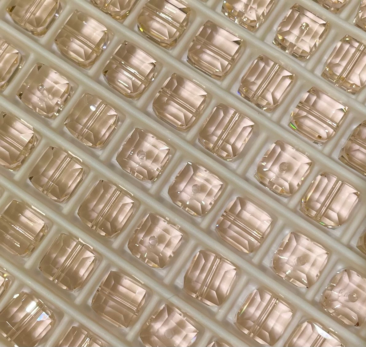 Beads offer the highest standard available on the market. The high-quality precision cutting and the clear through-hole achieve high brilliance and clarity. Rounded hole edges reduce the wear on thread and increase the durability of designs. The assortment is divided into classic, romantic, and progressive shape characteristics. They are available in the latest fashion colors, effects, and cuts. A wide range of colors and effects opens up endless possibilities for different combinations and designs. The main application techniques are beading, wiring, stringing, and weaving. Crystal Mesh Balls are also part of this product group.