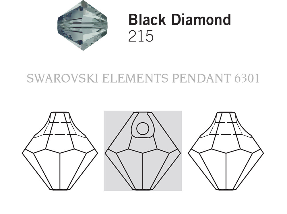 - Swarovski Pendant 6301 - 8mm, Black Diamond (215), 12pcs