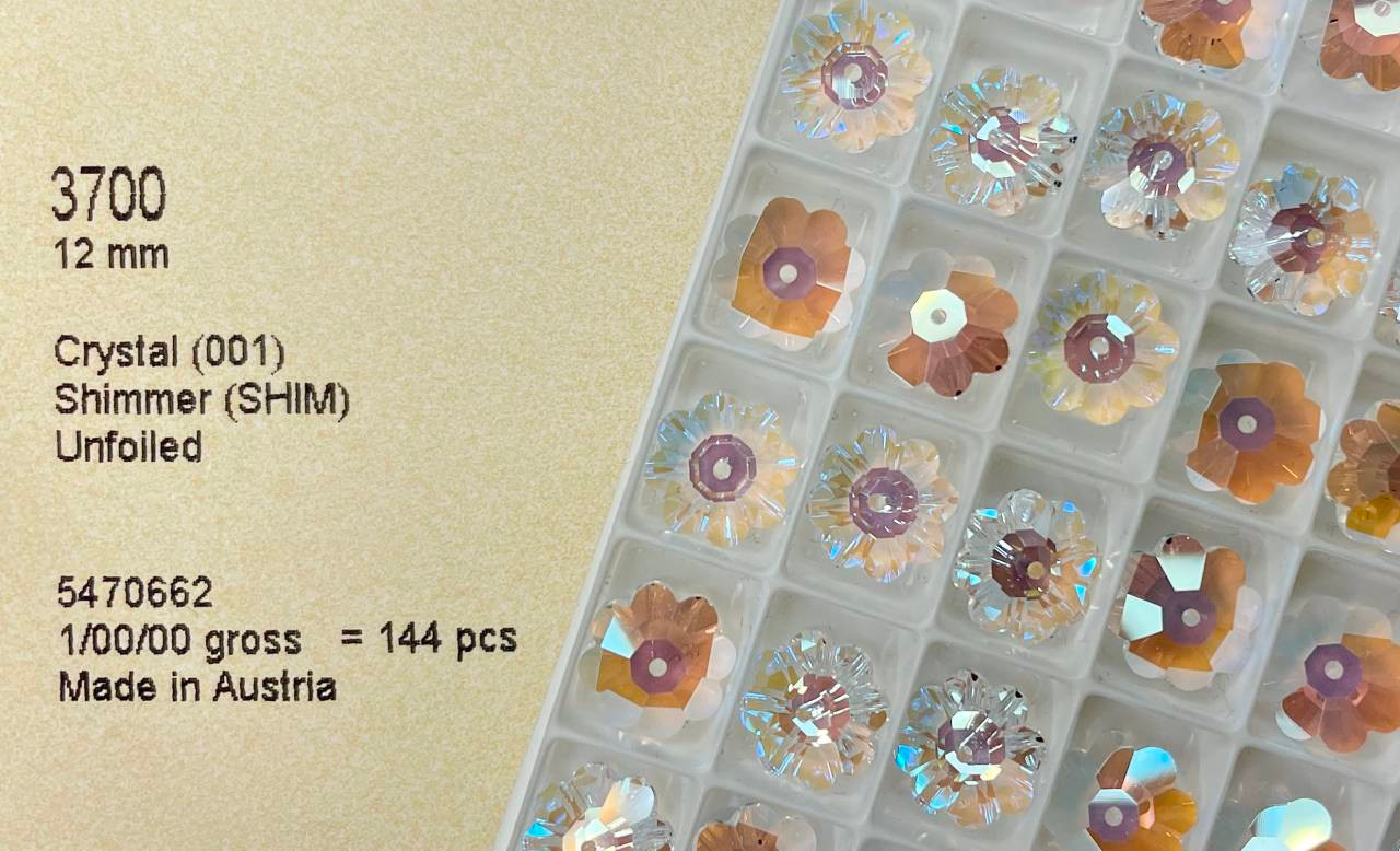 - Swarovski Sew-On 3700 - 12mm, Crystal Shimmer (001 SHIM) Unfoiled, 6pcs