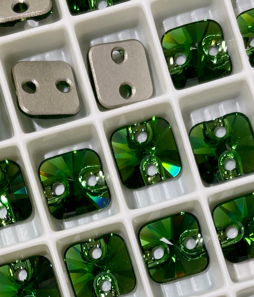- Swarovski Sew-On 3201 - 10mm, Dark Moss Green (260) Foiled, 4pcs