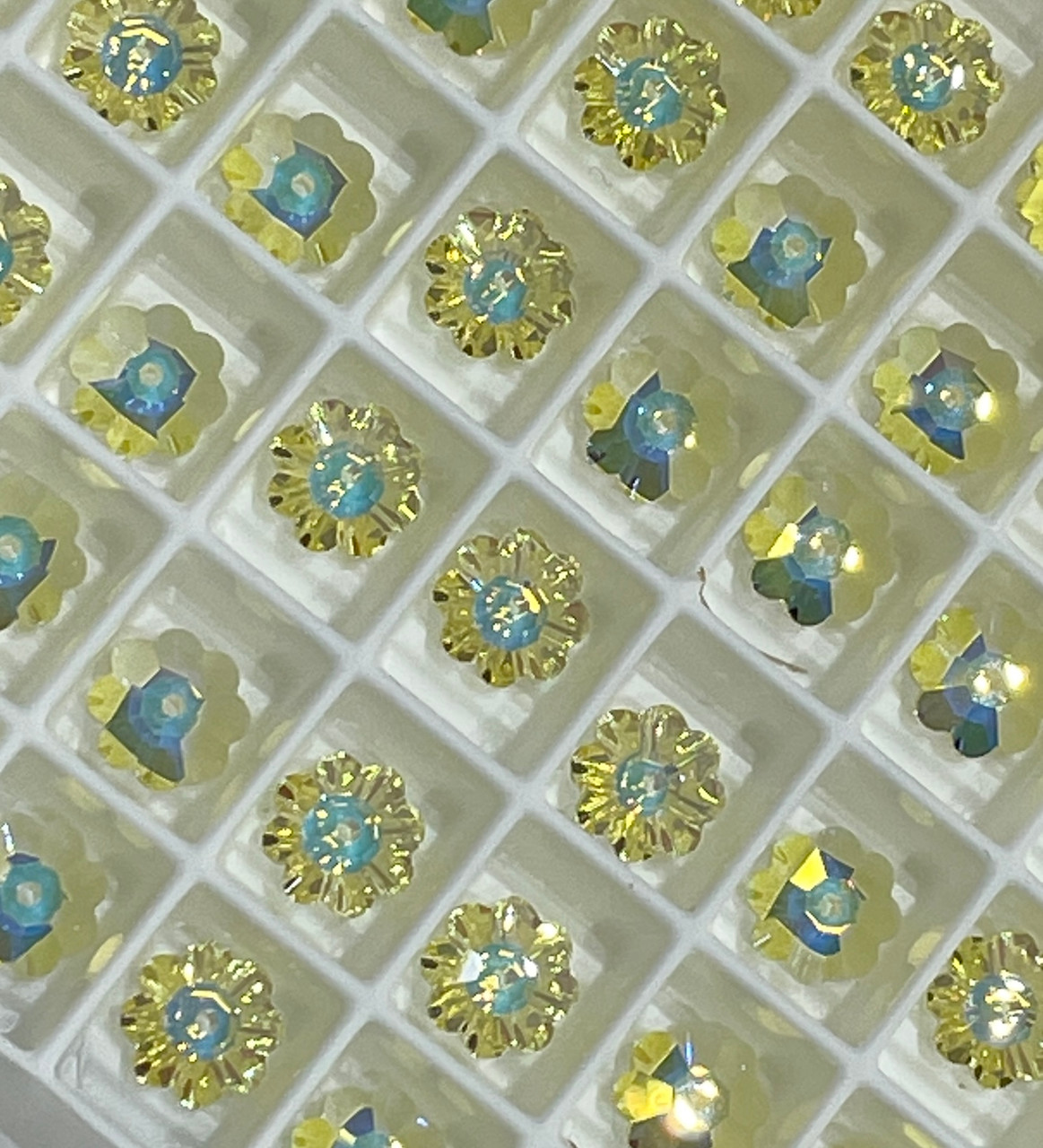 - Swarovski Sew-on 3700 - 8mm, Jonquil Aurore Boreale (213 AB), Unfoiled, 6pcs