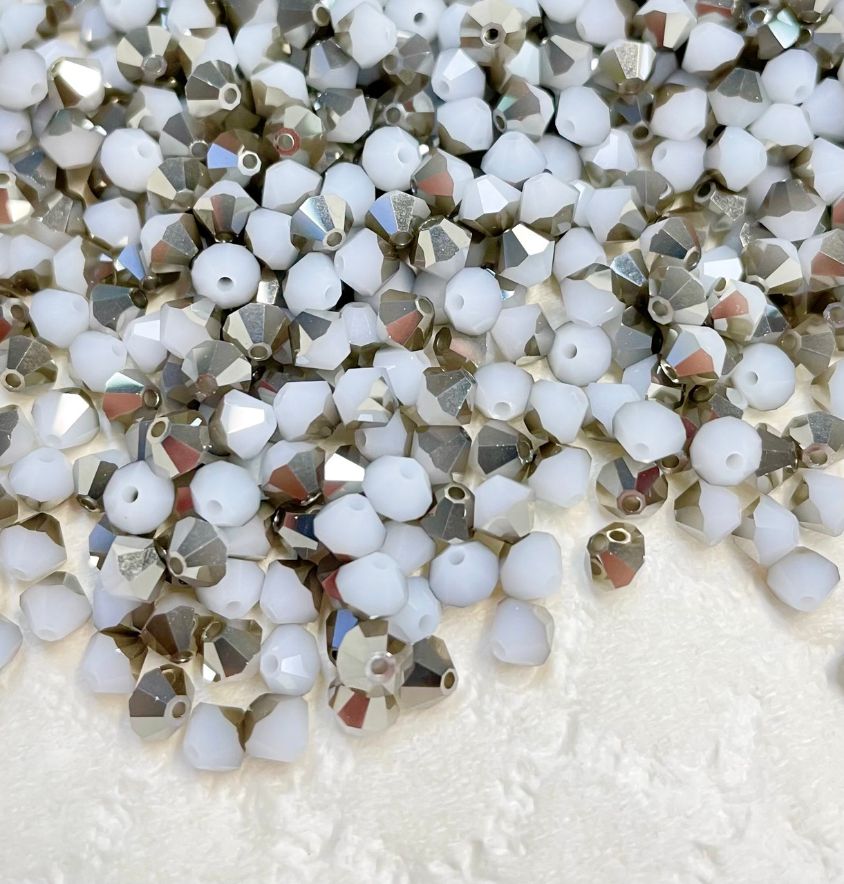 - Swarovski Bead 5301 - 4mm, White Alabaster Metallic Silver, 48pcs