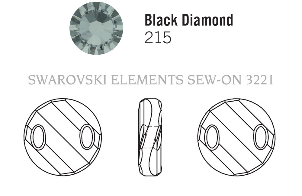 - Swarovski Sew-On 3221 - 18mm, Black Diamond (215) Unfoiled, 2pcs