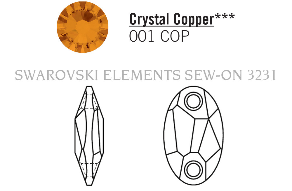 - Swarovski Sew-On 3231 - 18x11mm, Crystal Copper (001 COP) Unfoiled, 2pcs